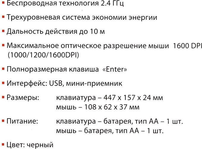 • Комплектация Клавиатура + мышь