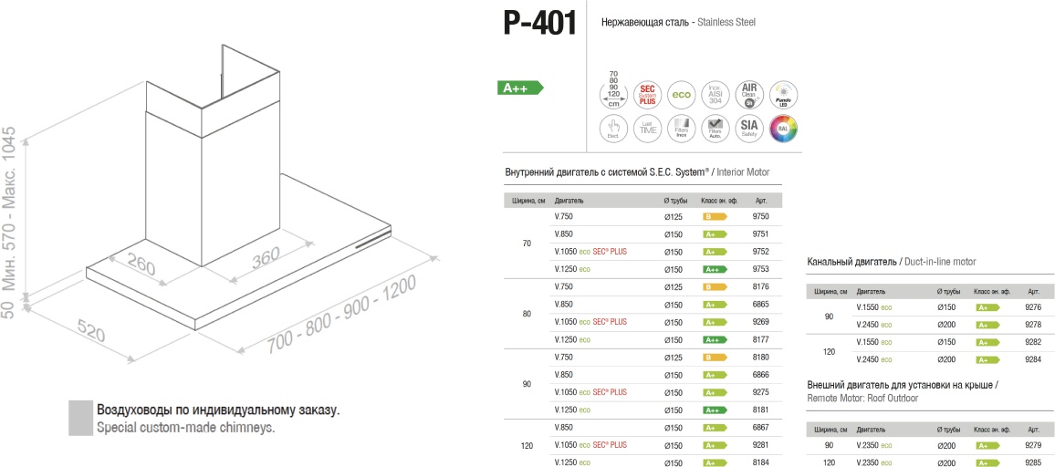 Кухонная вытяжка Pando P-401/70 IX 850 SEC