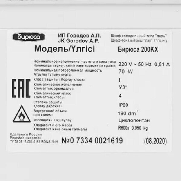 • Объем мороз. камеры 190 л