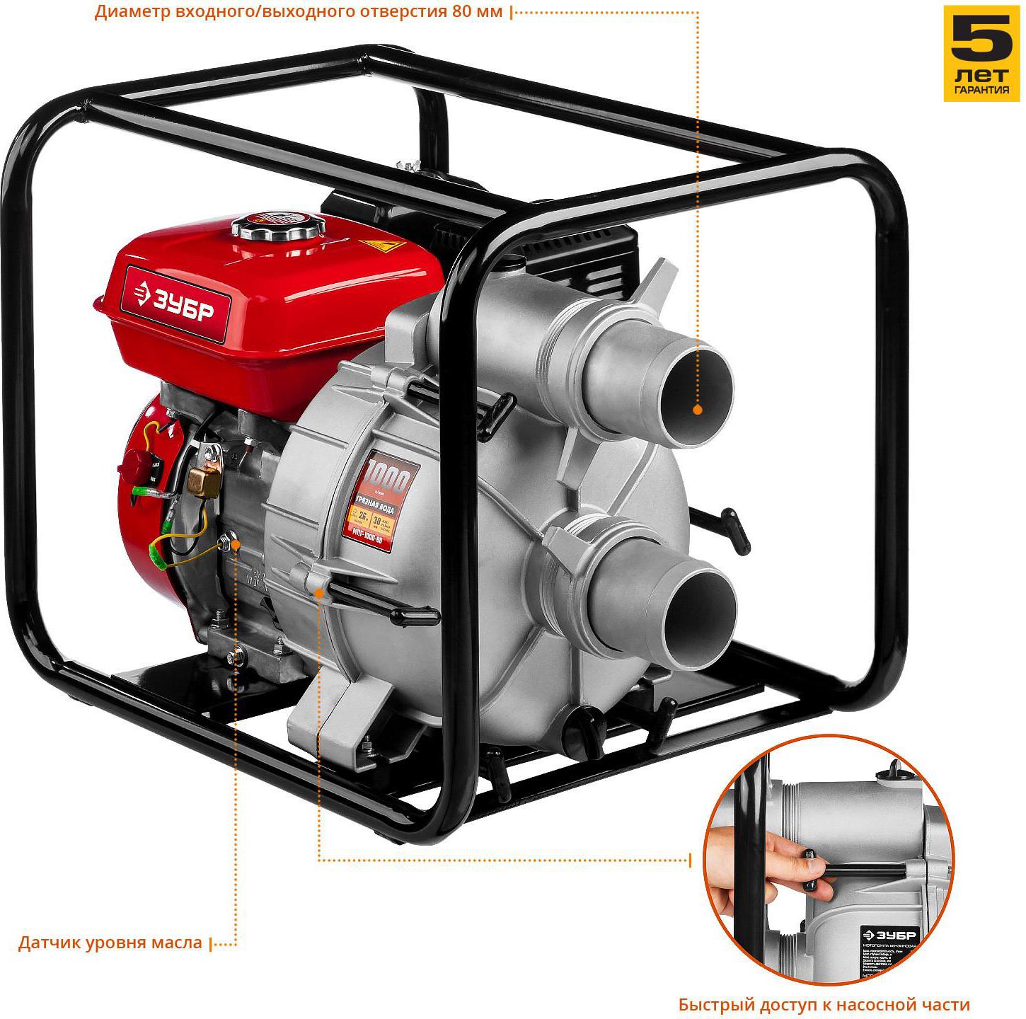 Мотопомпа Зубр МПГ-1000-80