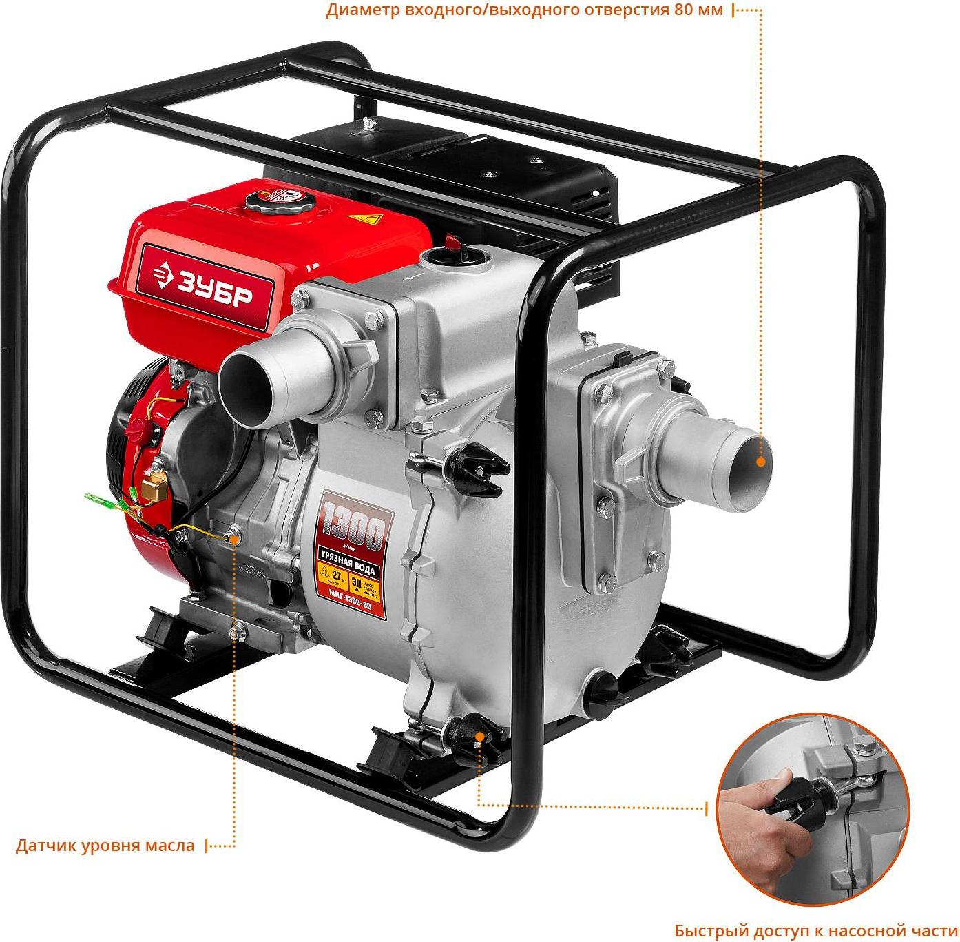 Мотопомпа Зубр МПГ-1300-80
