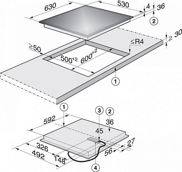 • Размеры встраивания (ШxГ) 60x50 см